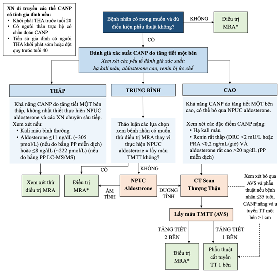 - Với bệnh nhân CANP do tăng tiết hai bên, không thể hay không mong muốn phẫu thuật, điều trị bằng MRA (spironolactone, eplerenone) là lựa chọn ưu tiên.