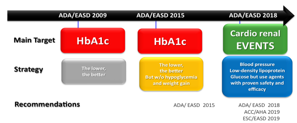 Hình 3: Sự thay đổi các khuyến cáo quản lý Đái tháo đường của ADA/ EASD 2009 – 2018