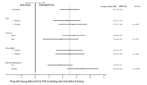 Những kết quả này khẳng định rằng Dapagliflozin cải thiện triệu chứng và giảm hạn chế thể chất ở bệnh nhân suy tim, đặc biệt có lợi ở nhóm bệnh nhân có bệnh đái tháo đường đồng mắc, vốn là nhóm có nguy cơ biến cố cao và chất lượng cuộc sống thấp hơn.