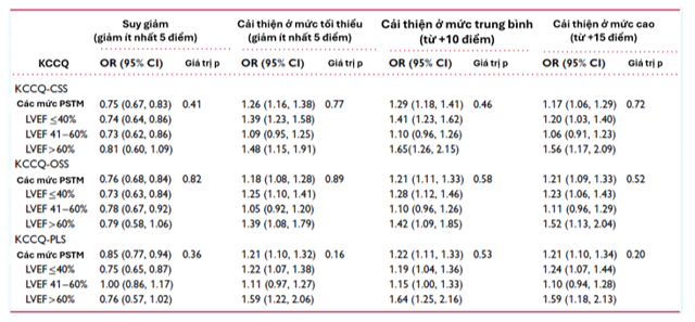 Kết quả cũng có tính đồng nhất đối với các đánh giá khác là KCCQ-CSS, -OSS và -PLS tại thời điểm 8 tháng: