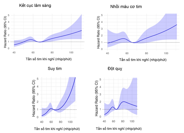 Hình 2. Mối tương quan giữa tần số tim khi nghỉ và các biến cố tim mạch trên bệnh nhân Tăng huyết áp